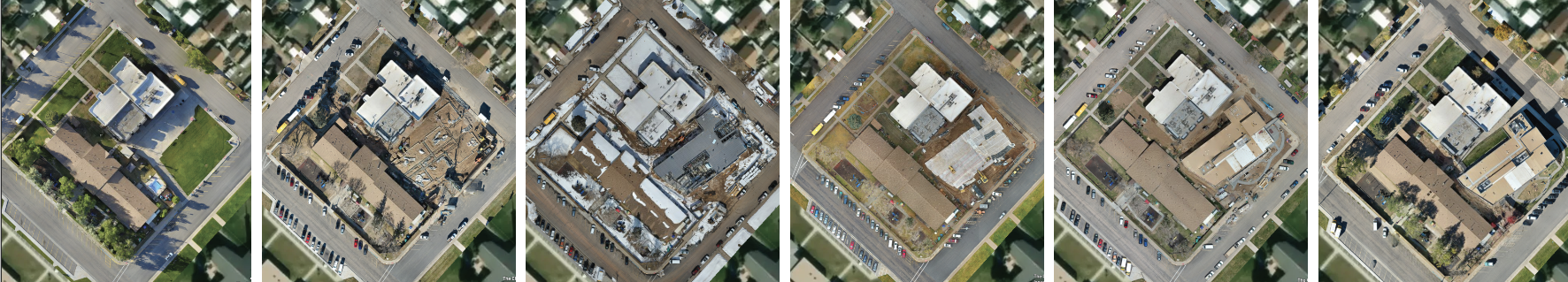 DroneDeploy images from our Evanston Childhood Development Center Project showing progress from preconstrcution to completed building and landscaping.